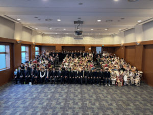 令和8年1月12日、中学校第74回卒業生が集まり「第15回 なわがく 二十歳を祝 う集い」を開催しました。 20歳を迎えた124名の卒業生たちが晴れ着姿で5年ぶりに集まり、恩師や旧友た ちと祝賀会を楽しみました。2時間という短い時間でしたが、当時の学年の先生方と も懐かしい話をし、大変盛り上がりました。 卒業生の皆さん、皆さんの益々のご活躍を応援しています。また、いつでも帰って きてください。なわがく(学園中)はいつまでも皆さんのHOMEです。